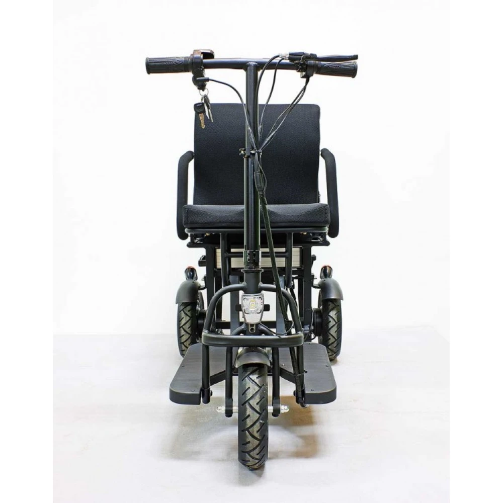 Водительское сидение широкое, имеет специальное воздухопроницаемое покрытие, позволяет длительное время находится в дороге. Техника представлена складной конструкцией, дает возможность легко транспортировать и брать с собой в путешествие. Мощность надежного двигателя 700 Вт позволяет развивать максимальную скорость 25 км/час за короткий период. Заряда емкого аккумулятора достаточно для прохождения 20 км пути без подзаряда. Современная технология изготовления батареи позволяет быстро заряжать, рассчитана на 1000 циклов заряда/разряда.