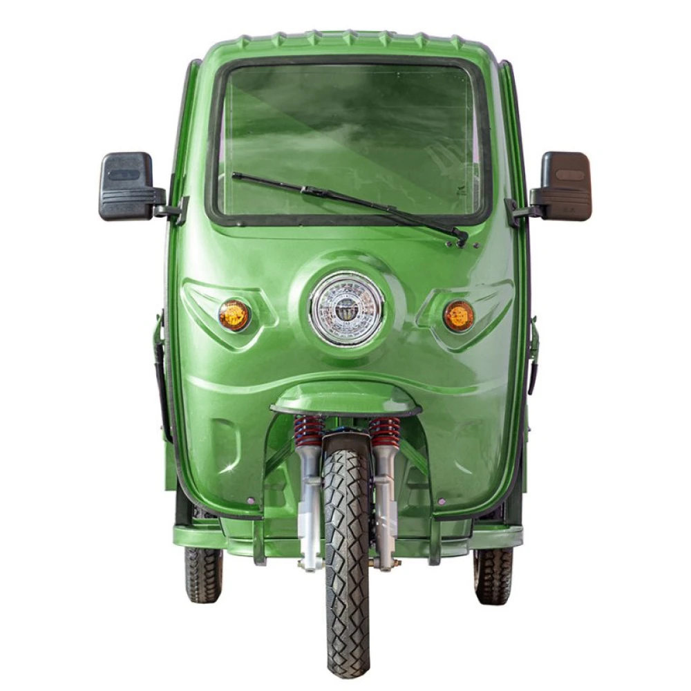 Грузовой электротрицикл Rutrike Гермес 1500 60V1200W темно-зеленого цвета - это надежный транспортный средство для перевозки грузов. Его мощность, грузоподъемность, всесезонная эксплуатация, барабанные тормоза и усиленные гидравлические амортизаторы в передней подвеске делают его отличным выбором для различных бизнес-потребностей.